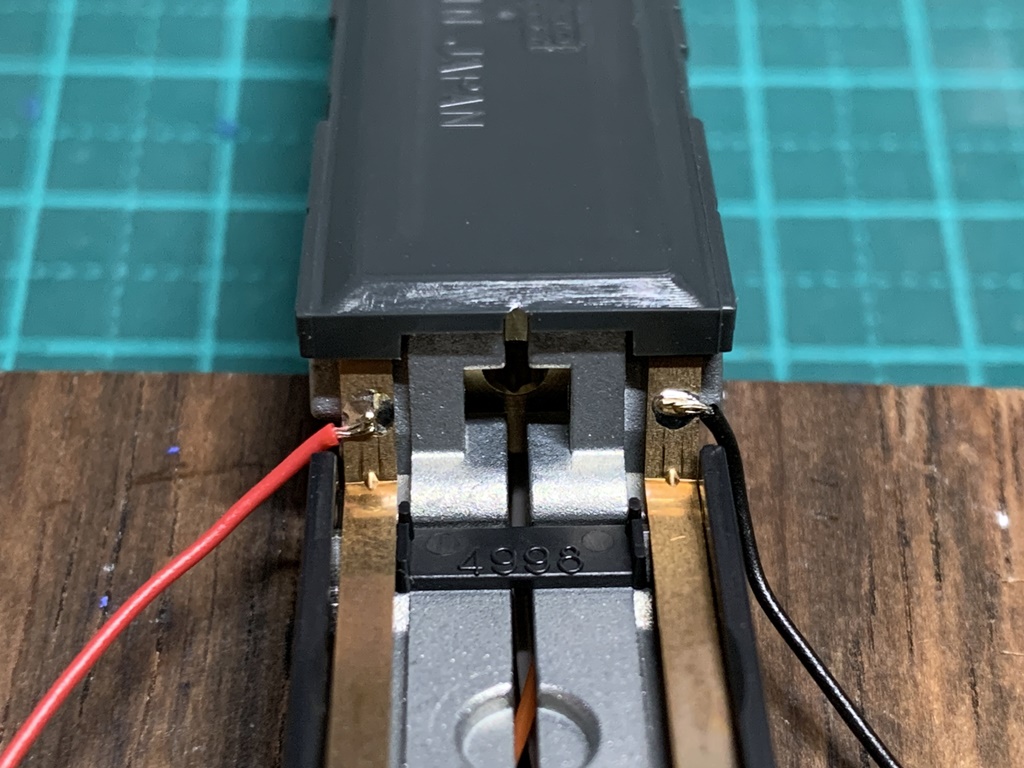 台車からの集電用の配線は、台車近くの集電版に配線をハンダ付けしました。