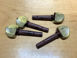 Gligaのバイオリンには黒檀のフィッティングが最初からついていますが、あご当てがいまいち合わないので、別のものに変更することにして、それと合わせてテールピースとペグも変更することにしました。