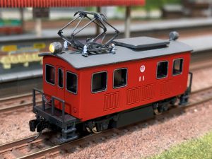 組み立て要領は、旧型電気機関車と同じで、アクリルの車体を箱組して、ペーパーの屋根を載せる構成になります。ボンネット部分は側板がアクリルでペーパーを上から前部にかけて貼り付けてあります。これで微妙な曲面を表現しているんですね。